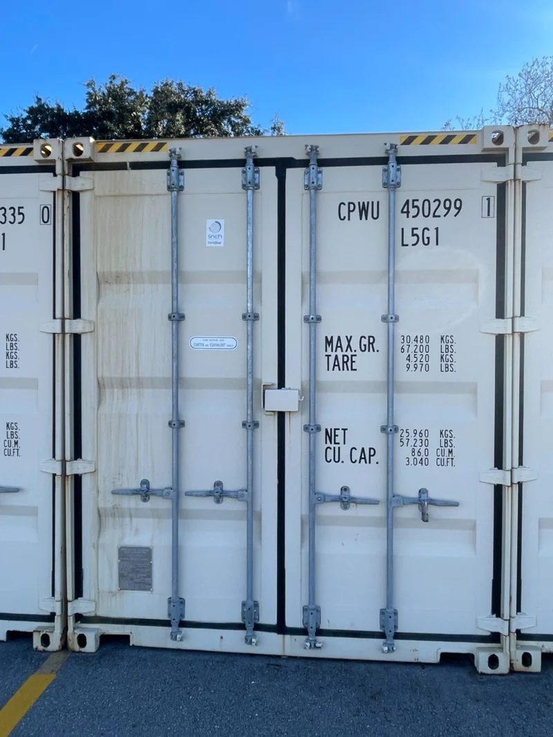 Available now in Fort Lauderdale: a 45-foot High Cube shipping container in excellent condition — purchased originally for a 4-container home build (see renderings for inspiration).