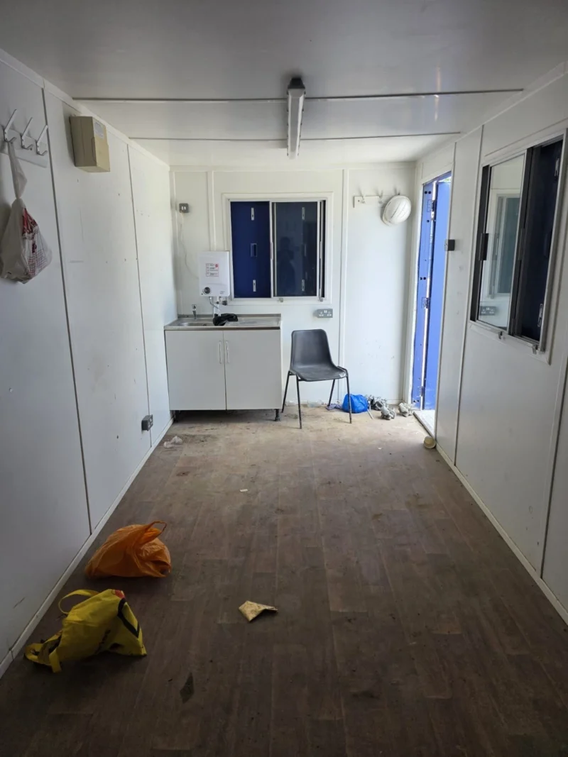 used, 20′ x 8′ shipping container, converted office unit (inc. sink and hot water boiler)
